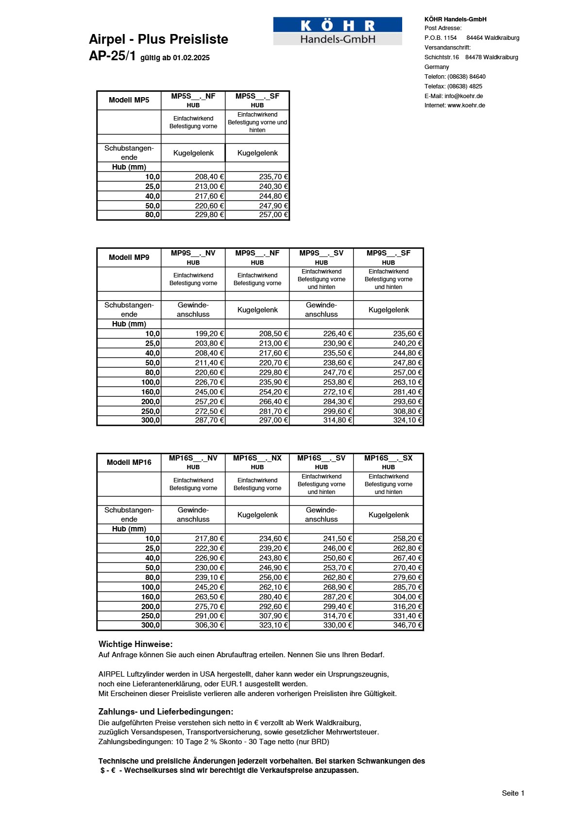Airpel Plus – MP5 – Allgemeine Technische Daten