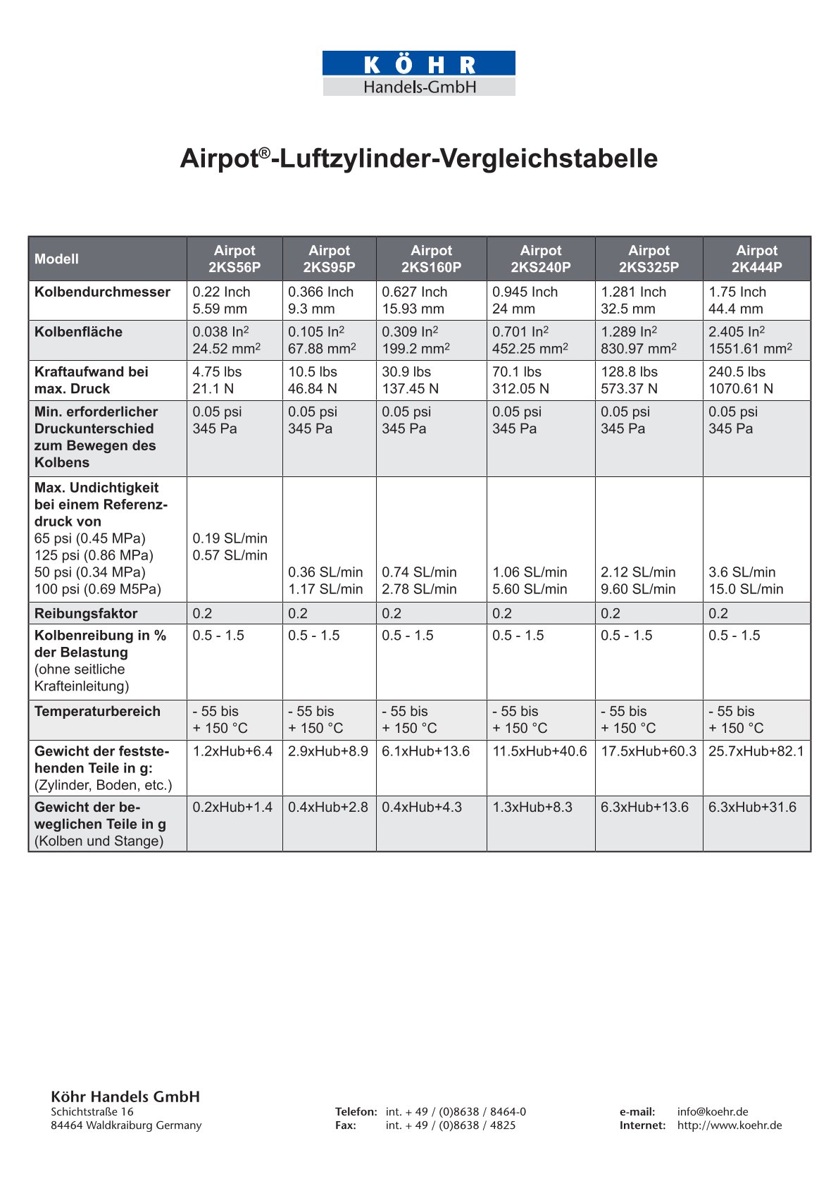 Airpot 2KS160P – Allgemeine Technische Daten